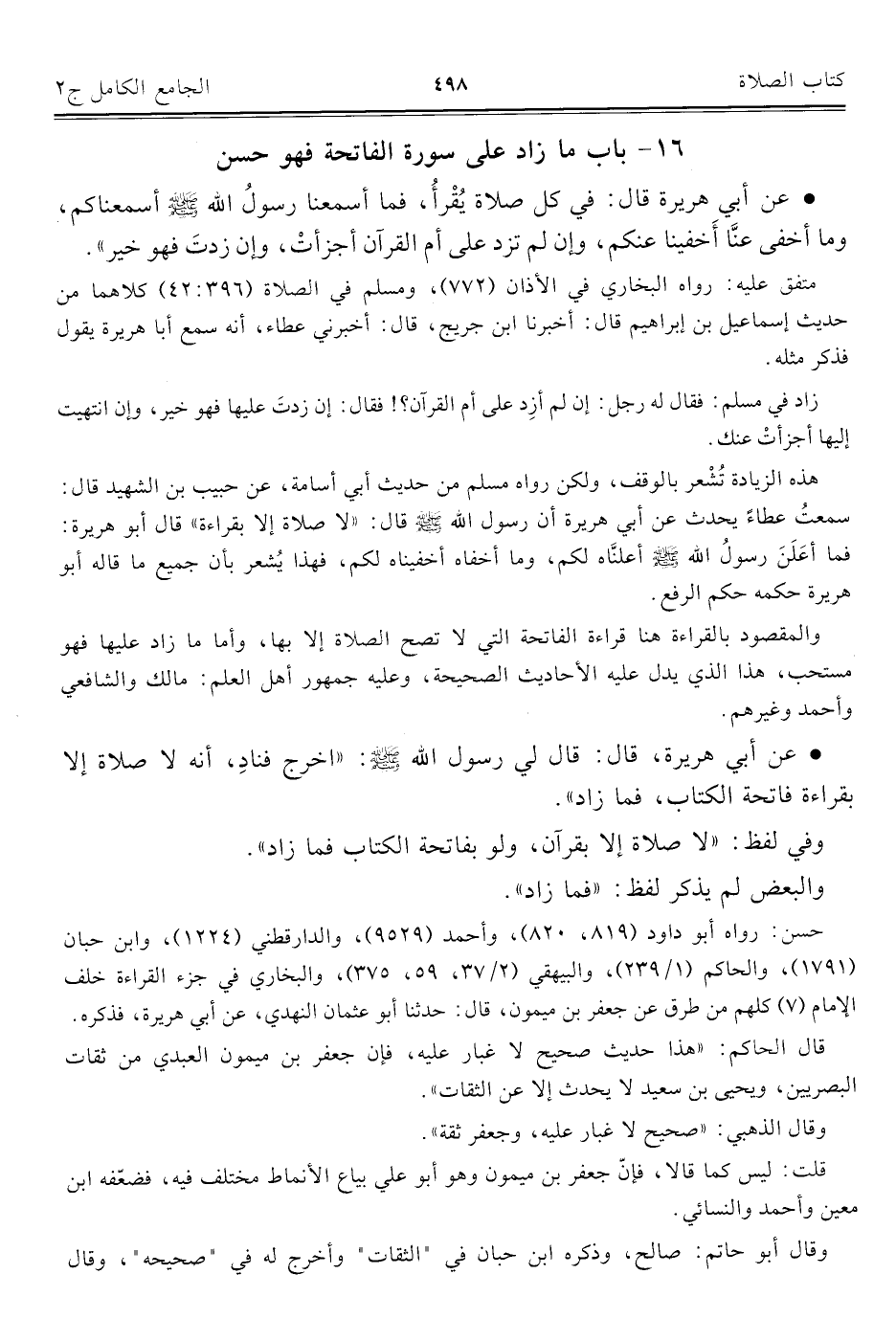 كتاب الجامع الكامل في الحديث الصحيح الشامل المرتب على أبواب الفقه (اسم الجزء: 2)