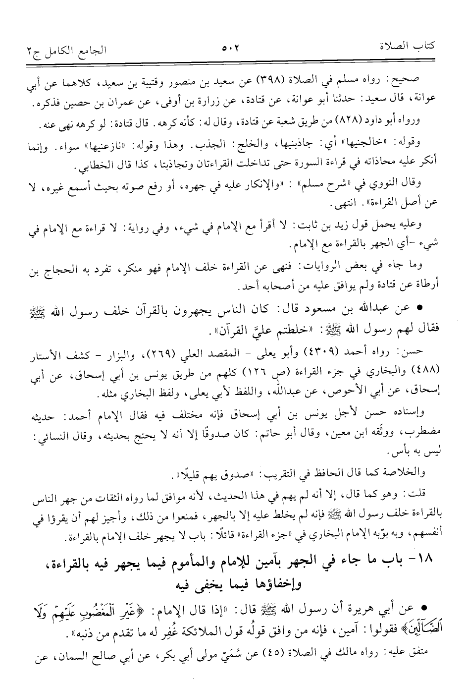 كتاب الجامع الكامل في الحديث الصحيح الشامل المرتب على أبواب الفقه (اسم الجزء: 2)