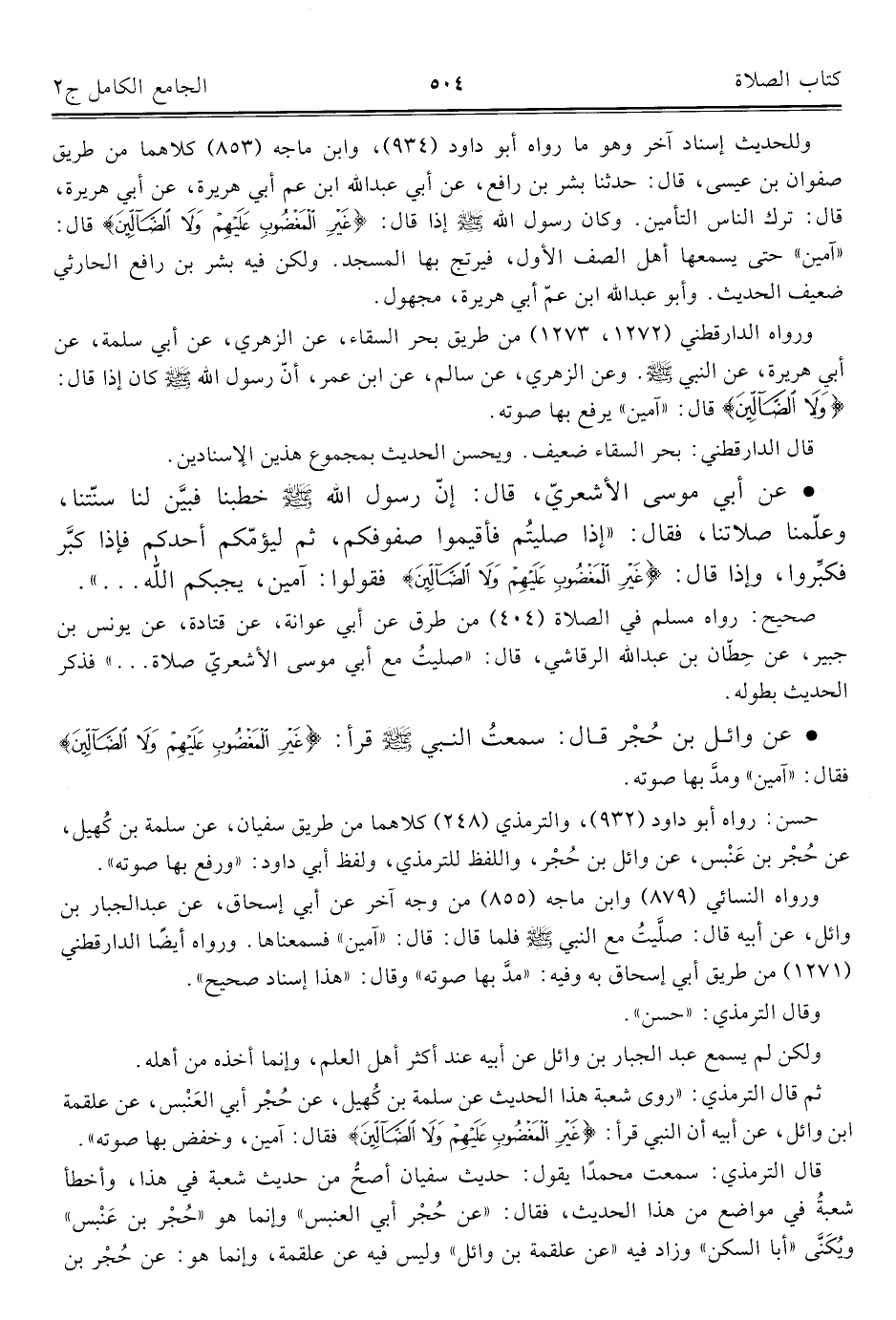 كتاب الجامع الكامل في الحديث الصحيح الشامل المرتب على أبواب الفقه (اسم الجزء: 2)