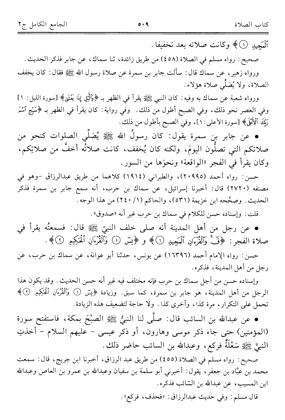 كتاب الجامع الكامل في الحديث الصحيح الشامل المرتب على أبواب الفقه (اسم الجزء: 2)