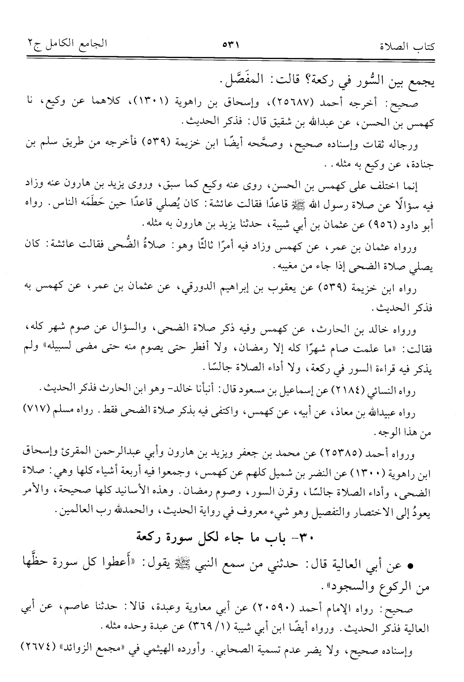 كتاب الجامع الكامل في الحديث الصحيح الشامل المرتب على أبواب الفقه (اسم الجزء: 2)