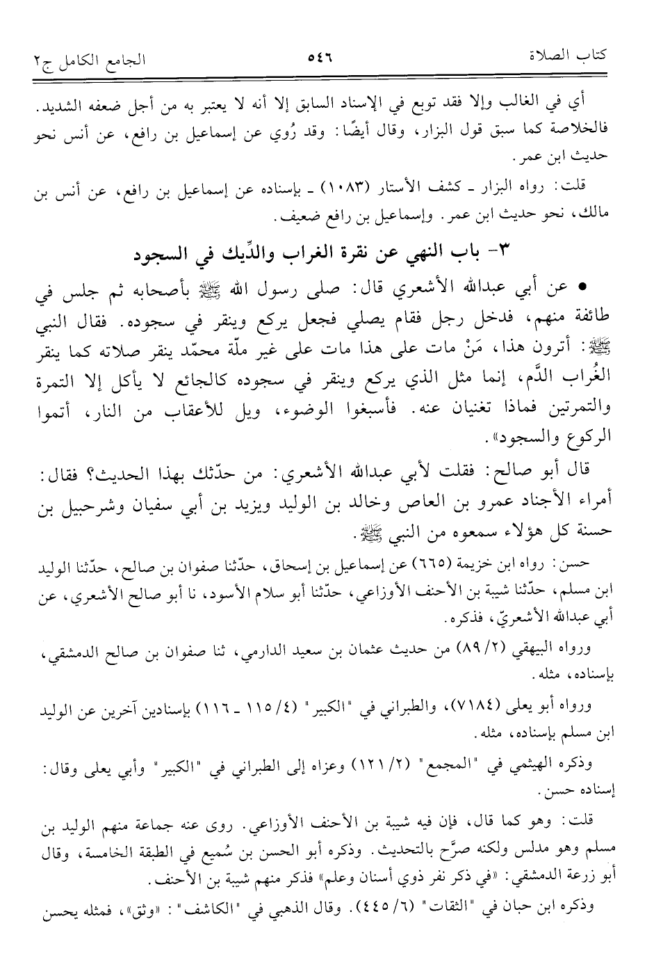 ٣ - باب النهي عن نقرة الغراب والدِّيك في السجود