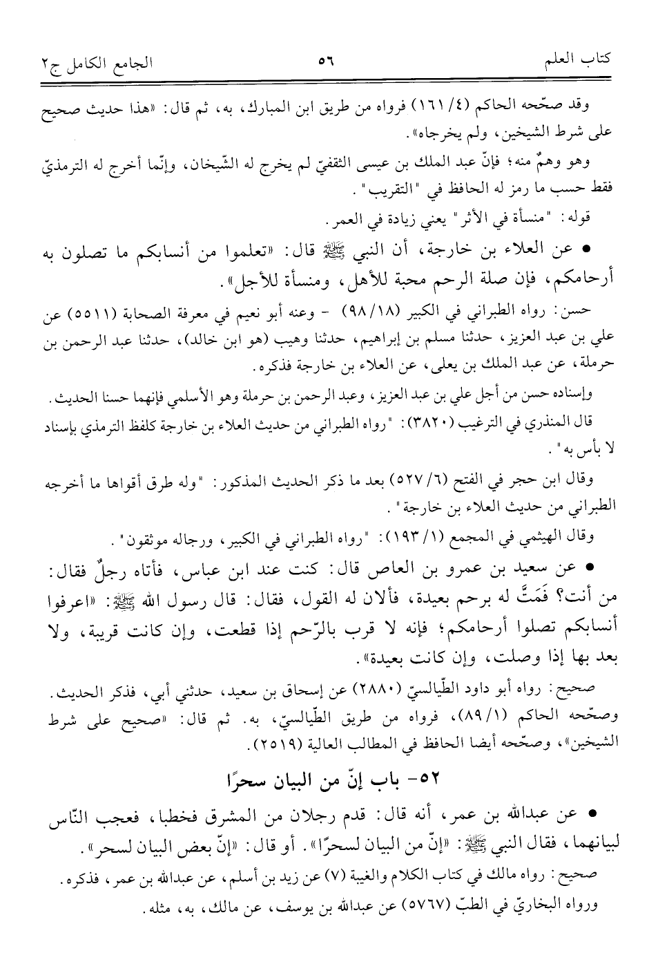 كتاب الجامع الكامل في الحديث الصحيح الشامل المرتب على أبواب الفقه (اسم الجزء: 2)