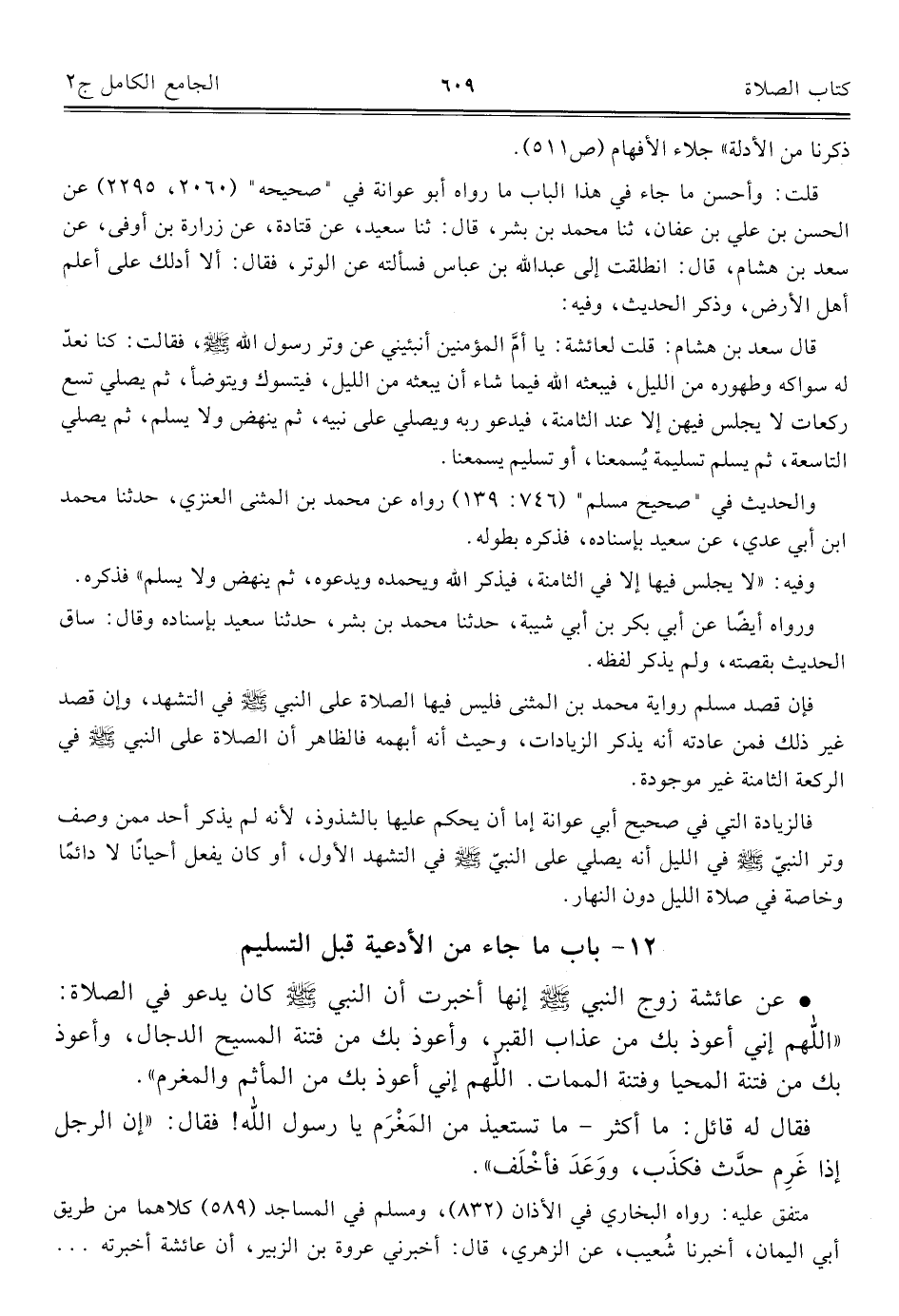 كتاب الجامع الكامل في الحديث الصحيح الشامل المرتب على أبواب الفقه (اسم الجزء: 2)