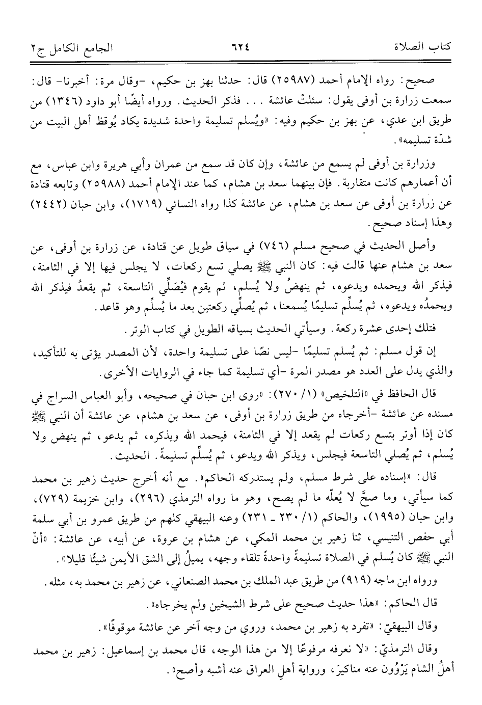 كتاب الجامع الكامل في الحديث الصحيح الشامل المرتب على أبواب الفقه (اسم الجزء: 2)