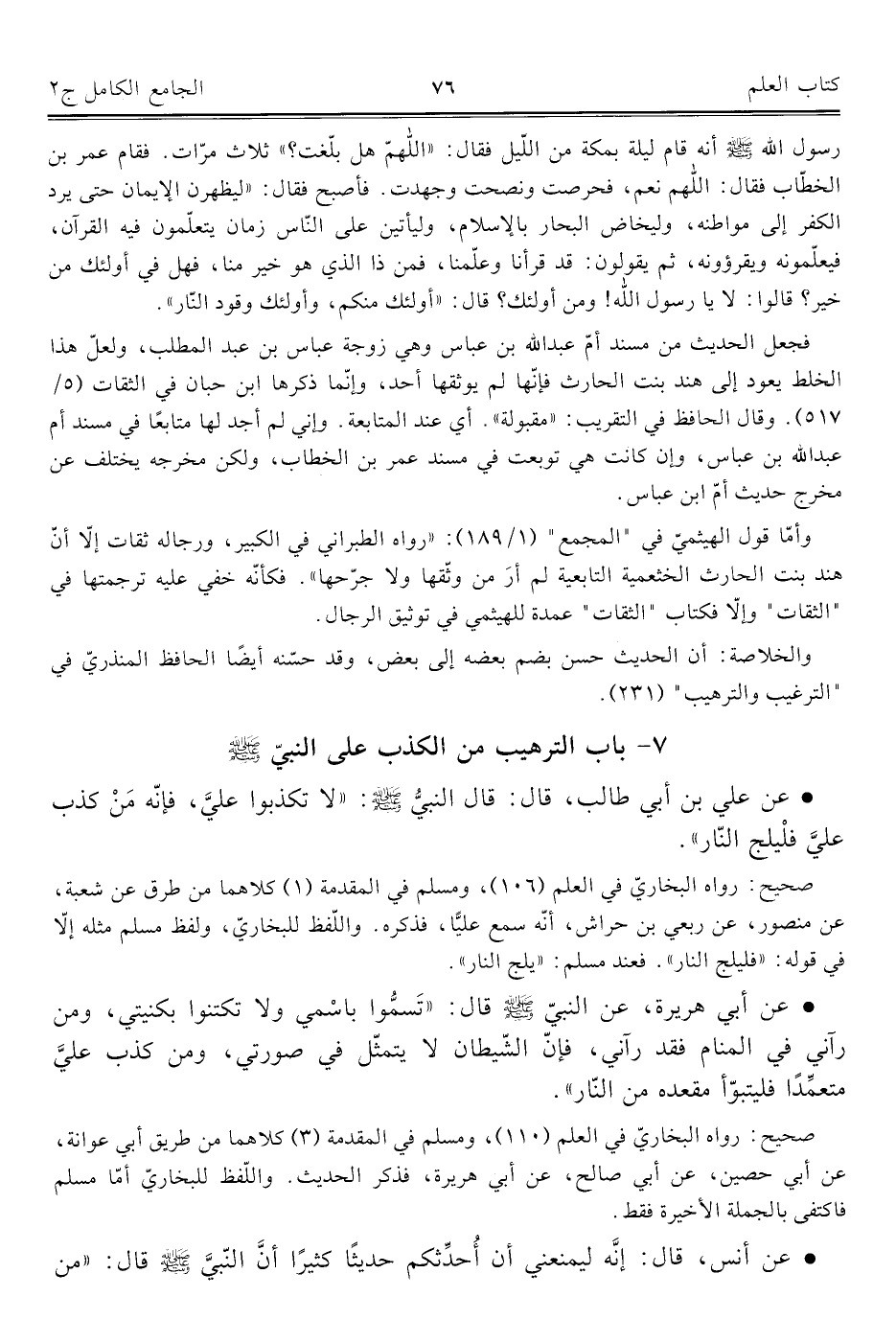 كتاب الجامع الكامل في الحديث الصحيح الشامل المرتب على أبواب الفقه (اسم الجزء: 2)
