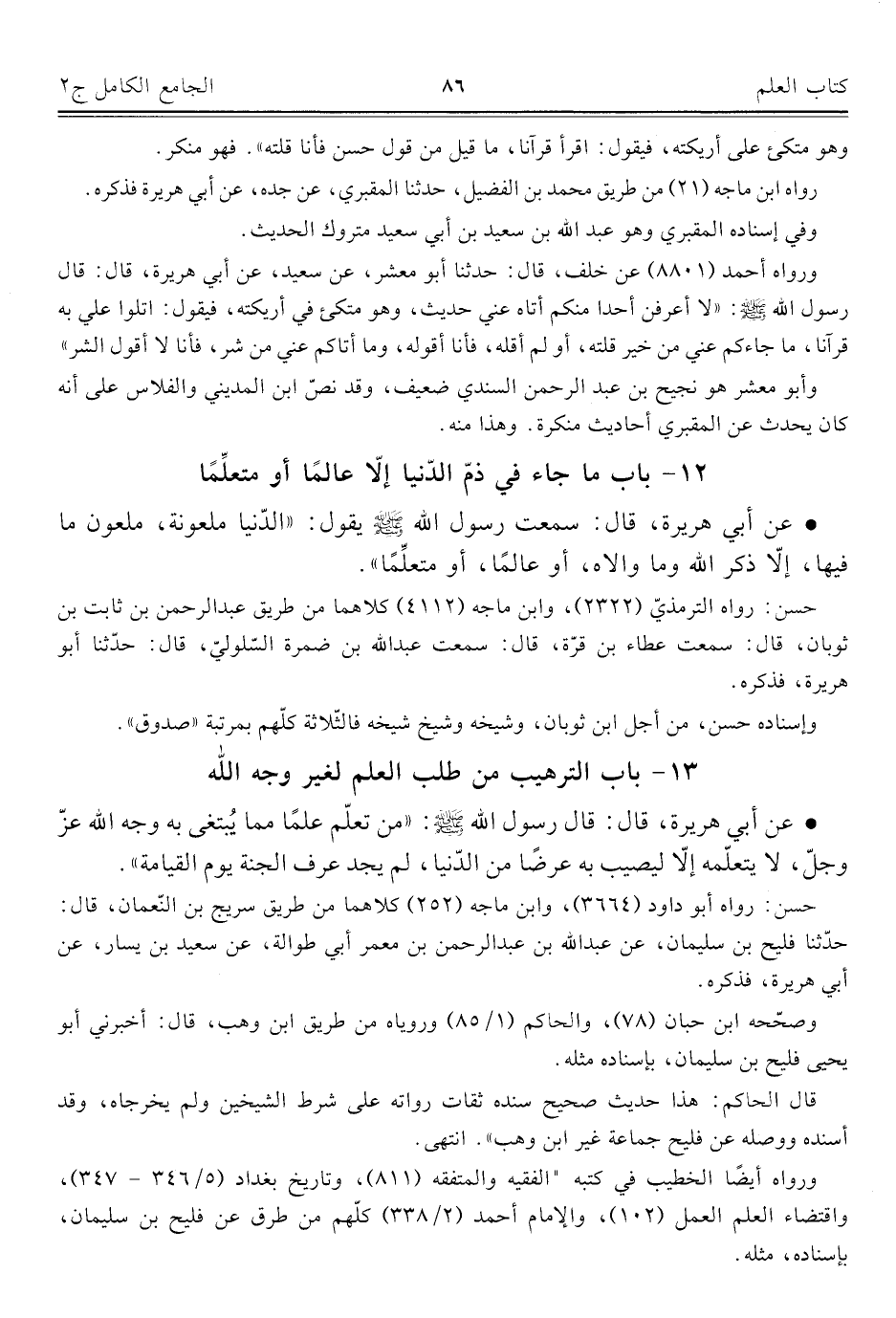 كتاب الجامع الكامل في الحديث الصحيح الشامل المرتب على أبواب الفقه (اسم الجزء: 2)