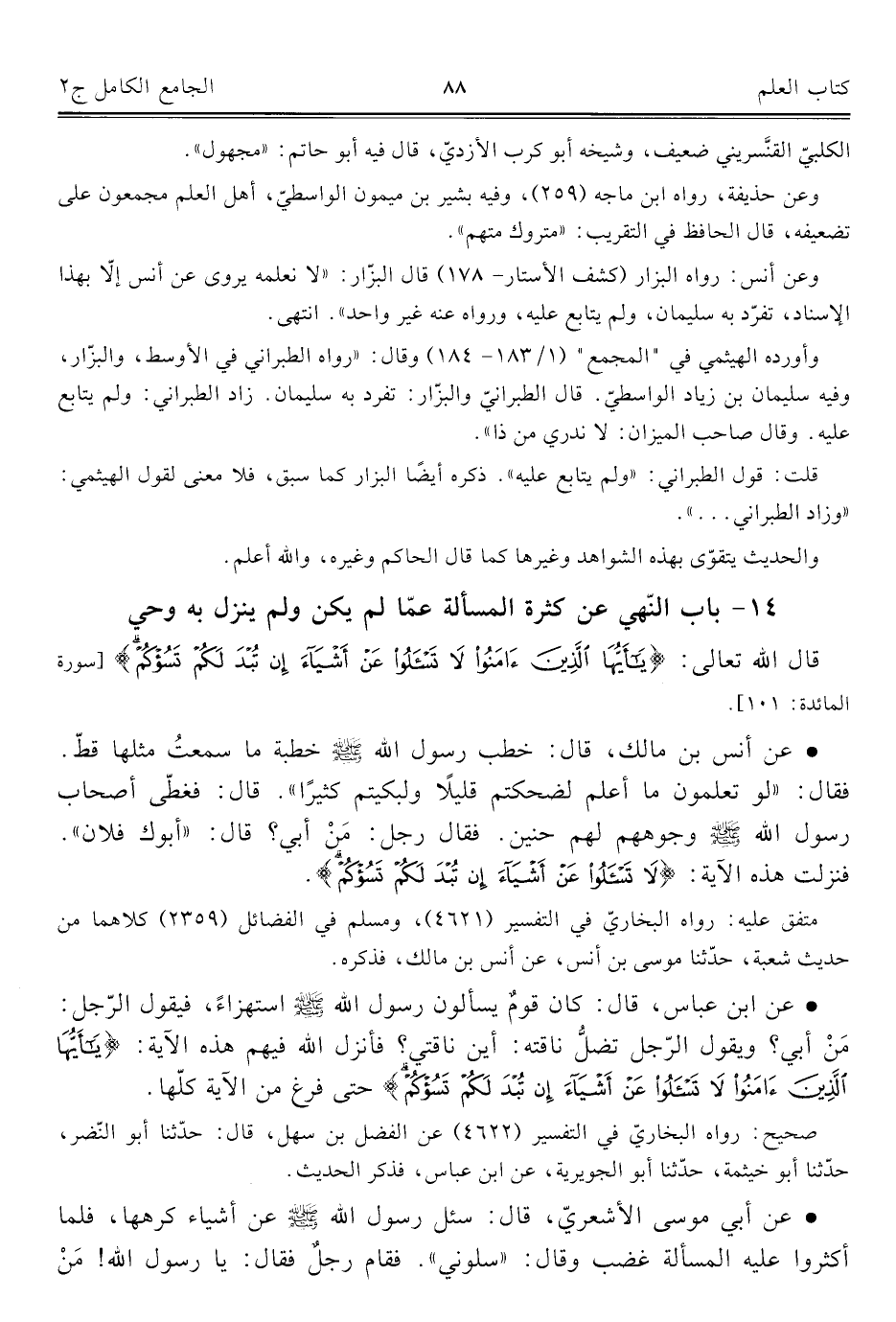 كتاب الجامع الكامل في الحديث الصحيح الشامل المرتب على أبواب الفقه (اسم الجزء: 2)