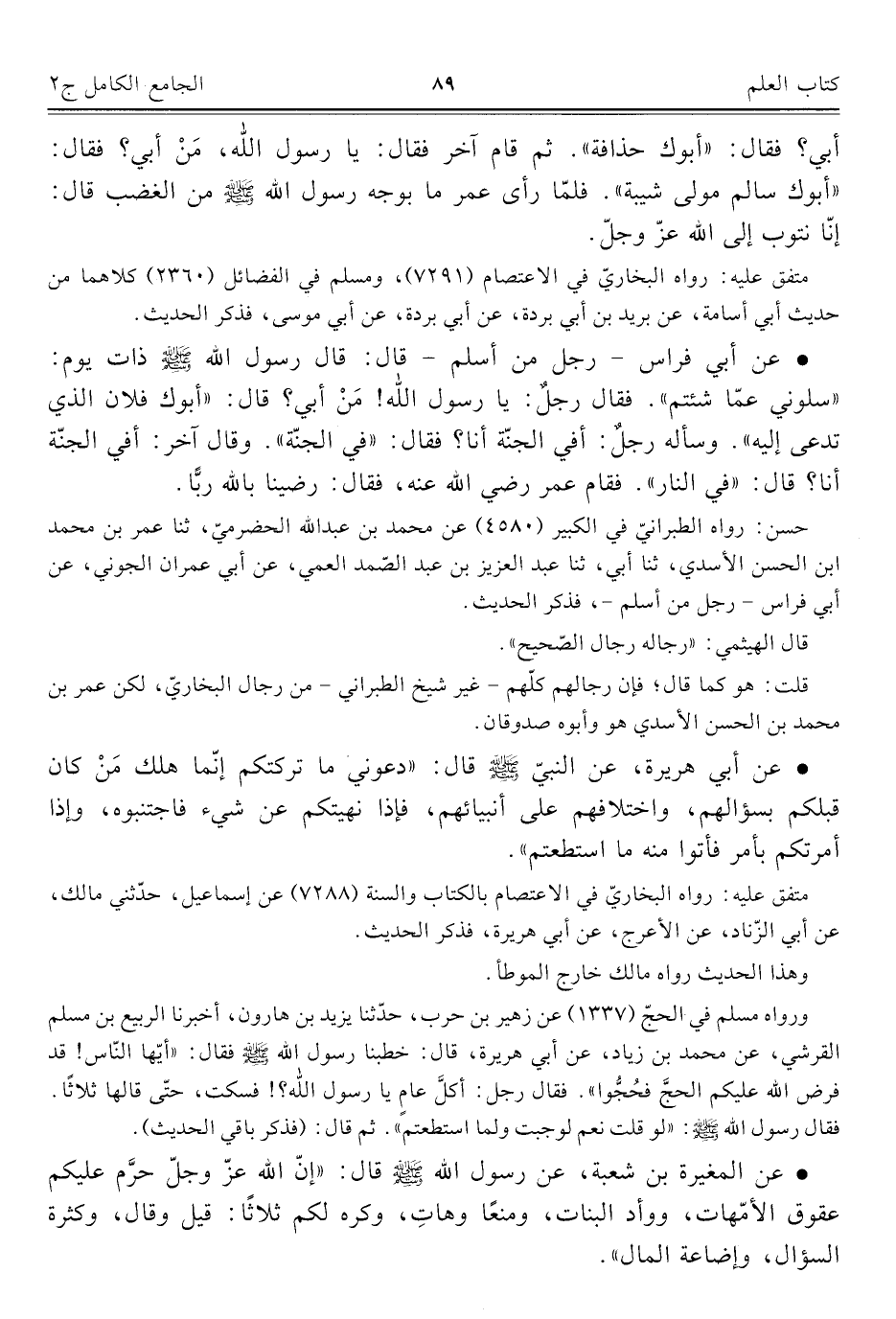 كتاب الجامع الكامل في الحديث الصحيح الشامل المرتب على أبواب الفقه (اسم الجزء: 2)