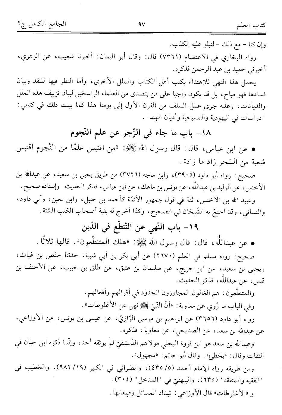كتاب الجامع الكامل في الحديث الصحيح الشامل المرتب على أبواب الفقه (اسم الجزء: 2)