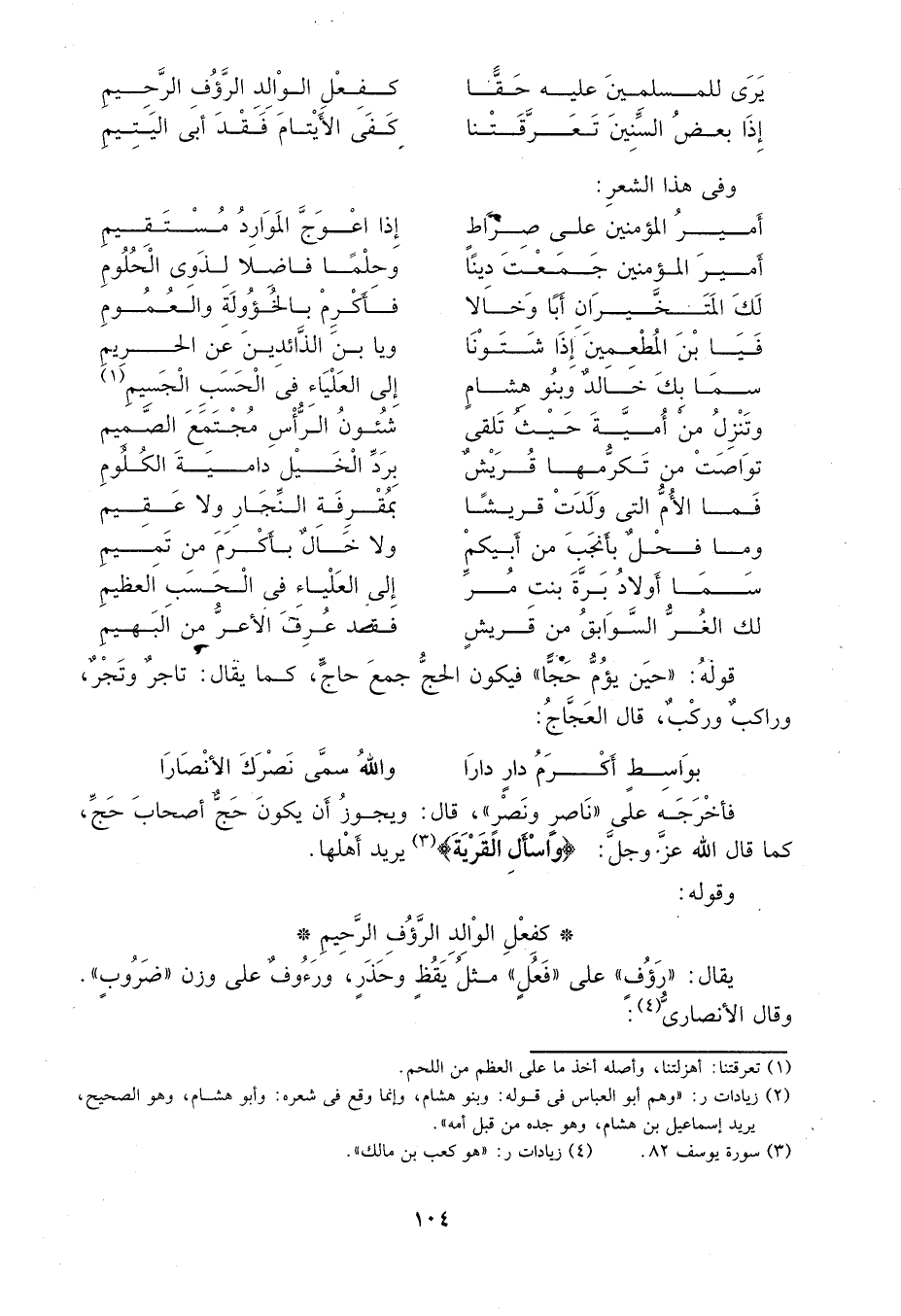 2 زيادات ر: "وهم أبو العباس في قوله: وبنو هشام، وإنما وقع في شعره: وأبو هشام، وهو الصحيح، يريد إسماعيل بن هشام وهو جده من قبل أمه".