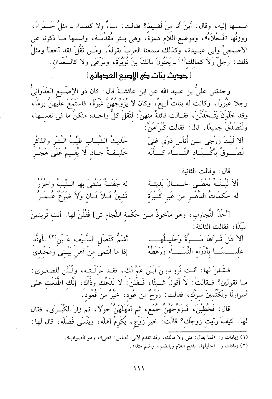"أخذ التجارب، وهو مأخوذ من حكمة اللجام ش" فقلن لها: أنتِ تريدين سيداً. فقالت: الثالثة:
