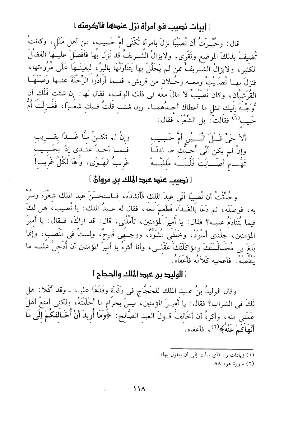 أبيات نصيب في امرأة نزل عندها فأكرمته