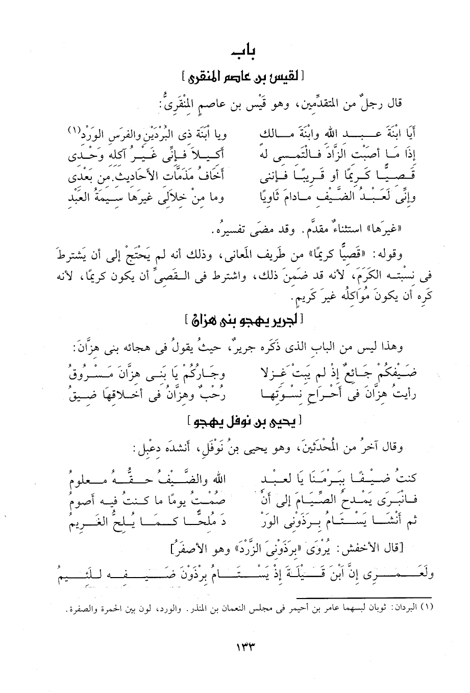 1 البردان: ثوبان لبسهما عامر بن أحيمر في مجلس النعمان بن المنذر. والورد، لون بين الحمرة والصفرة