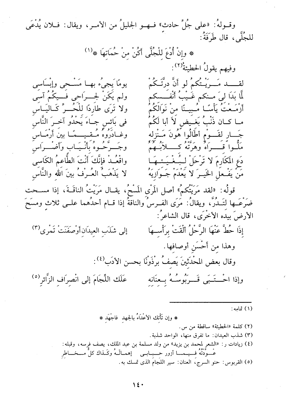 4 زيادات ر: "الشعر لمحمد بن يزيد" من ولد مسلمة بن عبد الملك، يصف فرسه، وقبله: