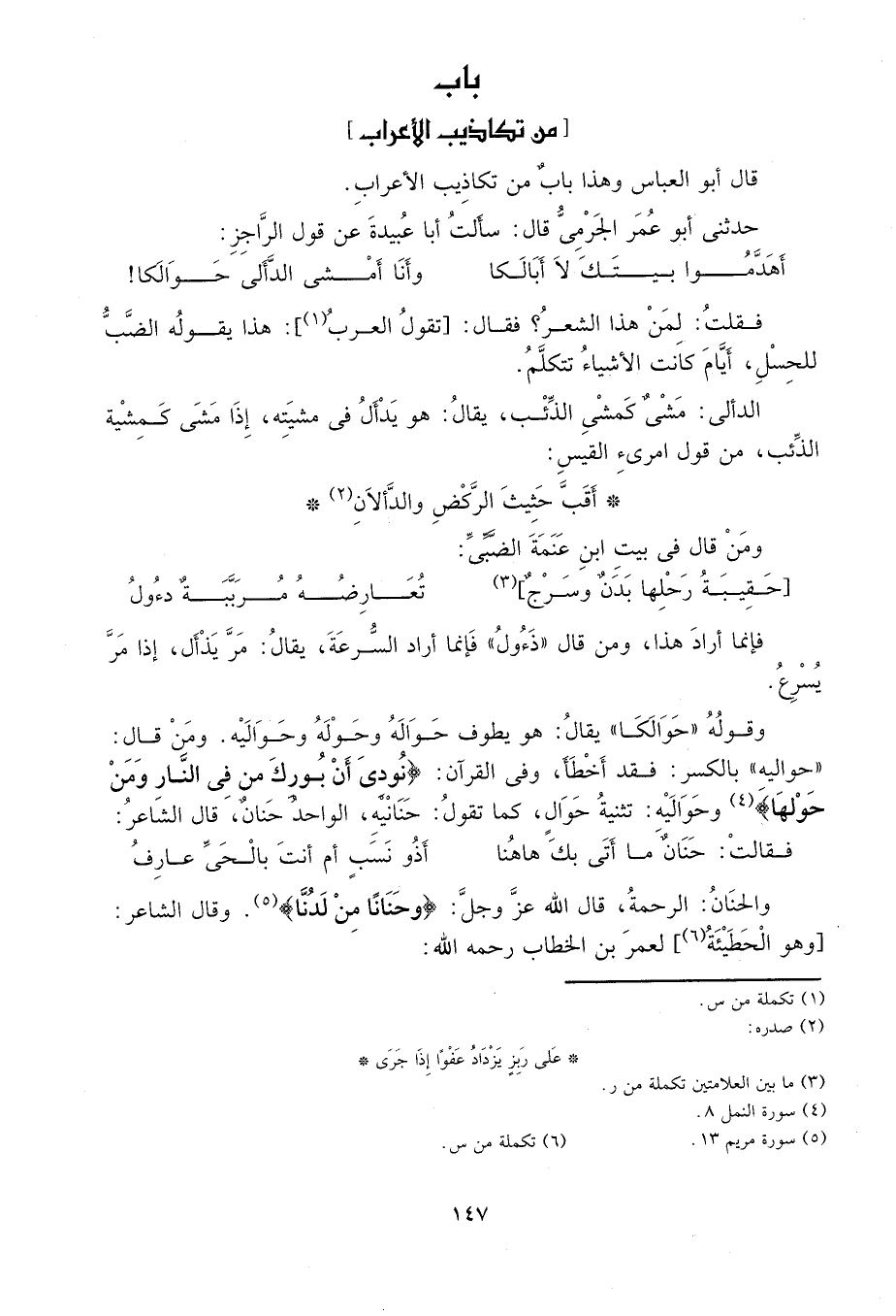 قال أبو العباس: وهذا باب من تكاذيب الأعراب.