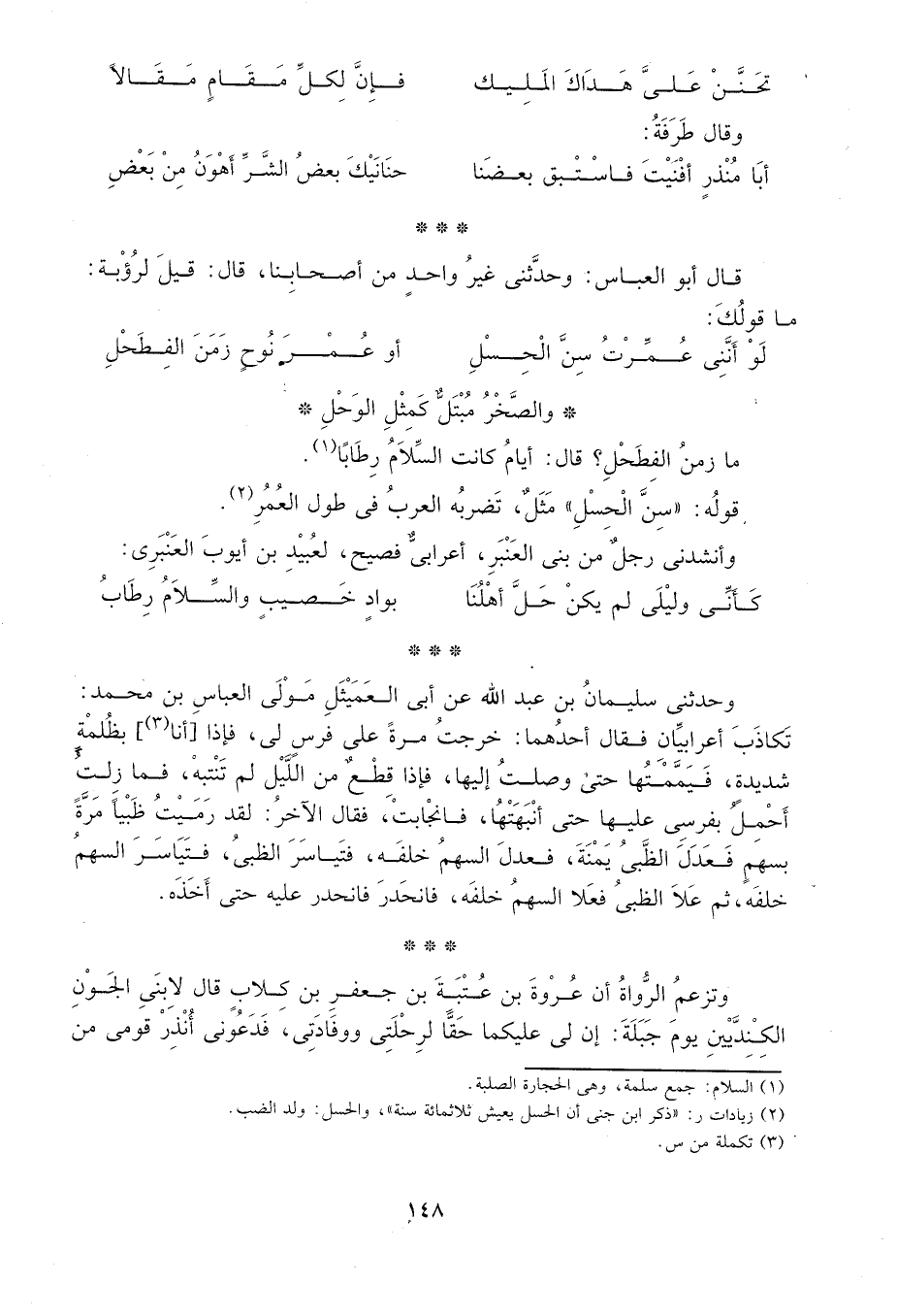 قال أبو العباس: وحدثني غير واحدٍ من أصحابنا، قال: قيل لرؤية: ما قولك: