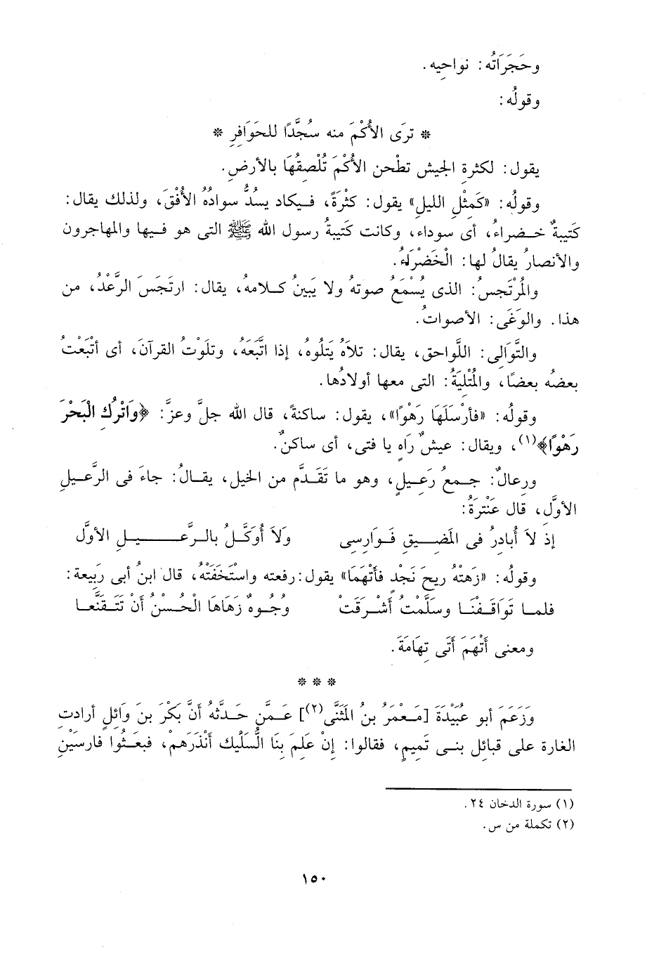 وقوله: "كمثل الليل" يقول: كثرة، فيكاد يسد سواده الأفق، ولذلك يقال: كتيبة خضراءُ، أي سوداء، وكانت كتيبة رسول الله صَلَّى اللَّهُ عَلَيْهِ وَسَلَّمَ التي هو فيها والمهاجرون والأنصار يقال لها: الخضراء.
