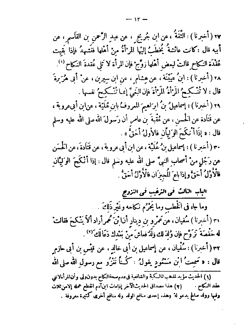 الباب الثالث في الترغيب في التزوج وما جاءَ في الْخَطبِ وما يَحْرُم نكاحه وغَيْرَ ذَلِكَ