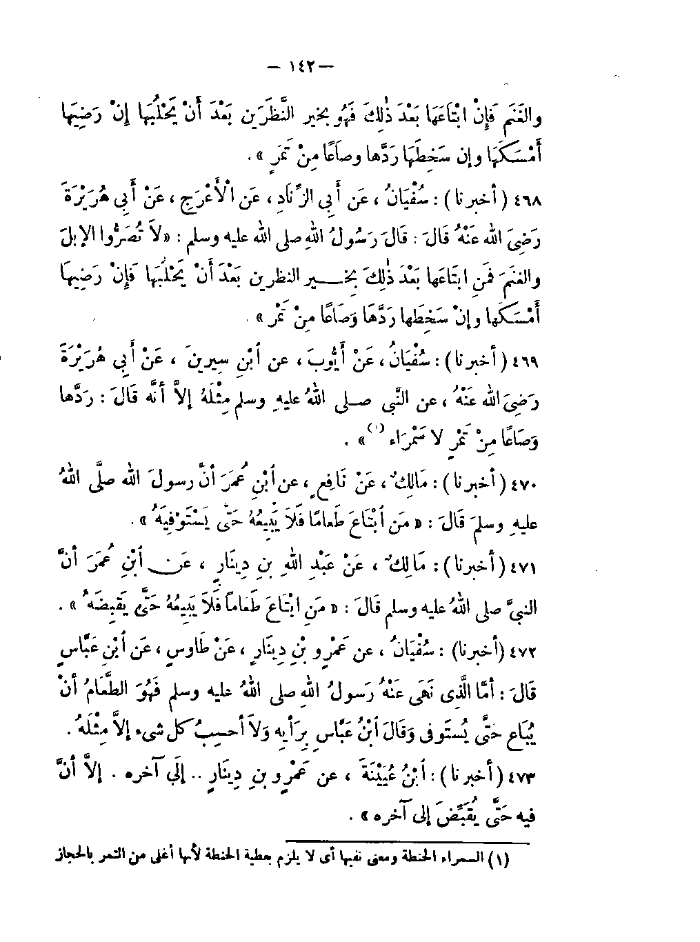 473- (أخبرنا) : ابنُ عُيَيْنَةَ، عن عَمرو بنِ دِينَارٍ، ... إلَى آخره إلاَّ أنَّ فيه حَتَّى يُقْبَضَ إلى آخره".