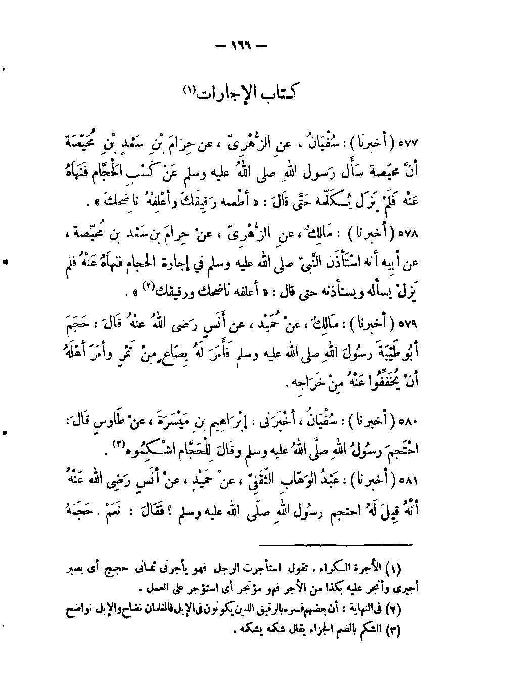 -أنَّ مُحَيّصَة سَأَل النَّبيّ صلَّى اللَّهُ عليه وسلم عَنْ كَسْبِ الْحَجَّام فَنَهَاهُ عَنْهُ فَلَمْ يَزَل يُكَلّمه حَتَّى قَالَ: «أطْعمه رَقِيقَكَ وأعْلِفْهُ ناضِحكَ» .