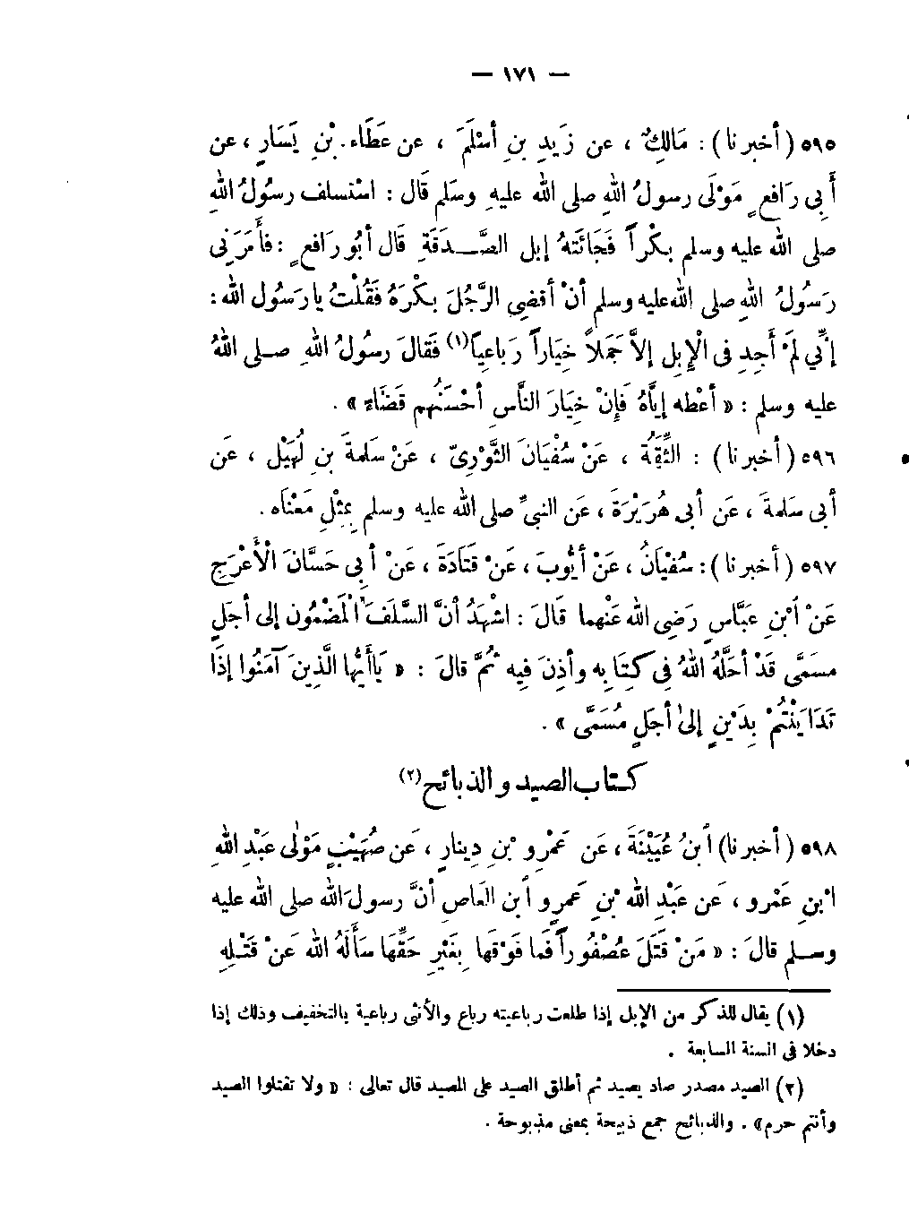 595- (أخبرنا) : مَالِكٌ، عَنْ زَيْدِ بنِ أسْلَم، عنْ عَطَاء بن يسَارٍ، عن أَبِي رَافِعٍ مَوْلَى رَسُولَ اللَّهِ صلَّى اللَّهُ عليه وسلم قَالَ: