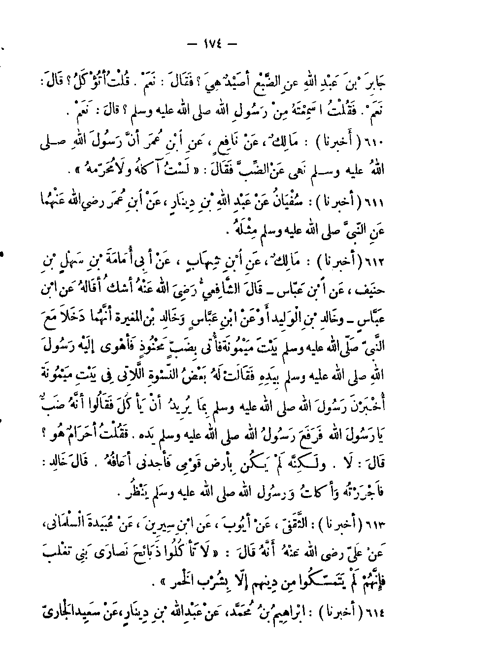 611- (أخبرنا) : سُفْيَانُ، عَنْ عَبْدِ اللَّهِ بنِ دِينَارٍ، عَنْ ابْنِ عُمرَ رَضِيَ اللَّه عَنْهُما: