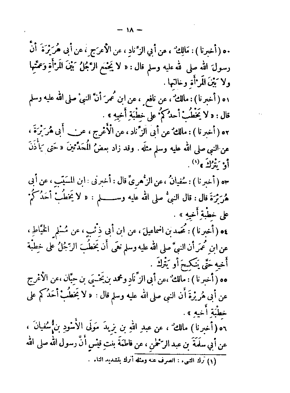 55- (أخبرنا) : مالكٌ، عن أبي الزِّنَادِ ومحمد بن يَحْيَ بن حِبَّان، عن الأعرَجِ، عن أبي هُرَيْرَة: