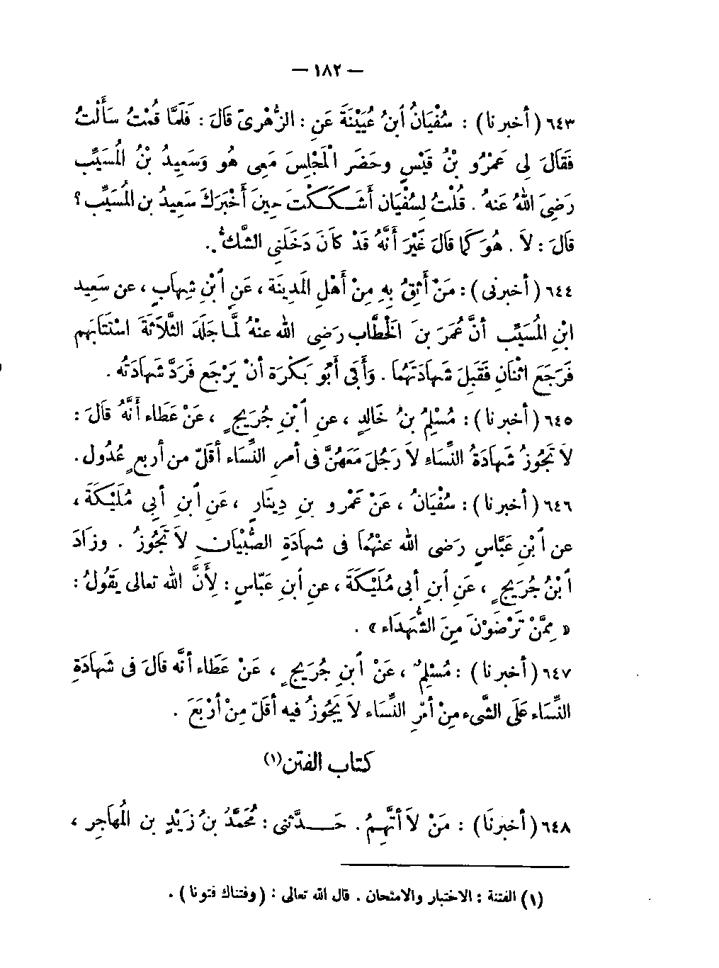 643- (أخبرنا) : سُفْيَانُ بنُ عُيَيْنَةَ عَنِ: الزُّهْريّ قَالَ: