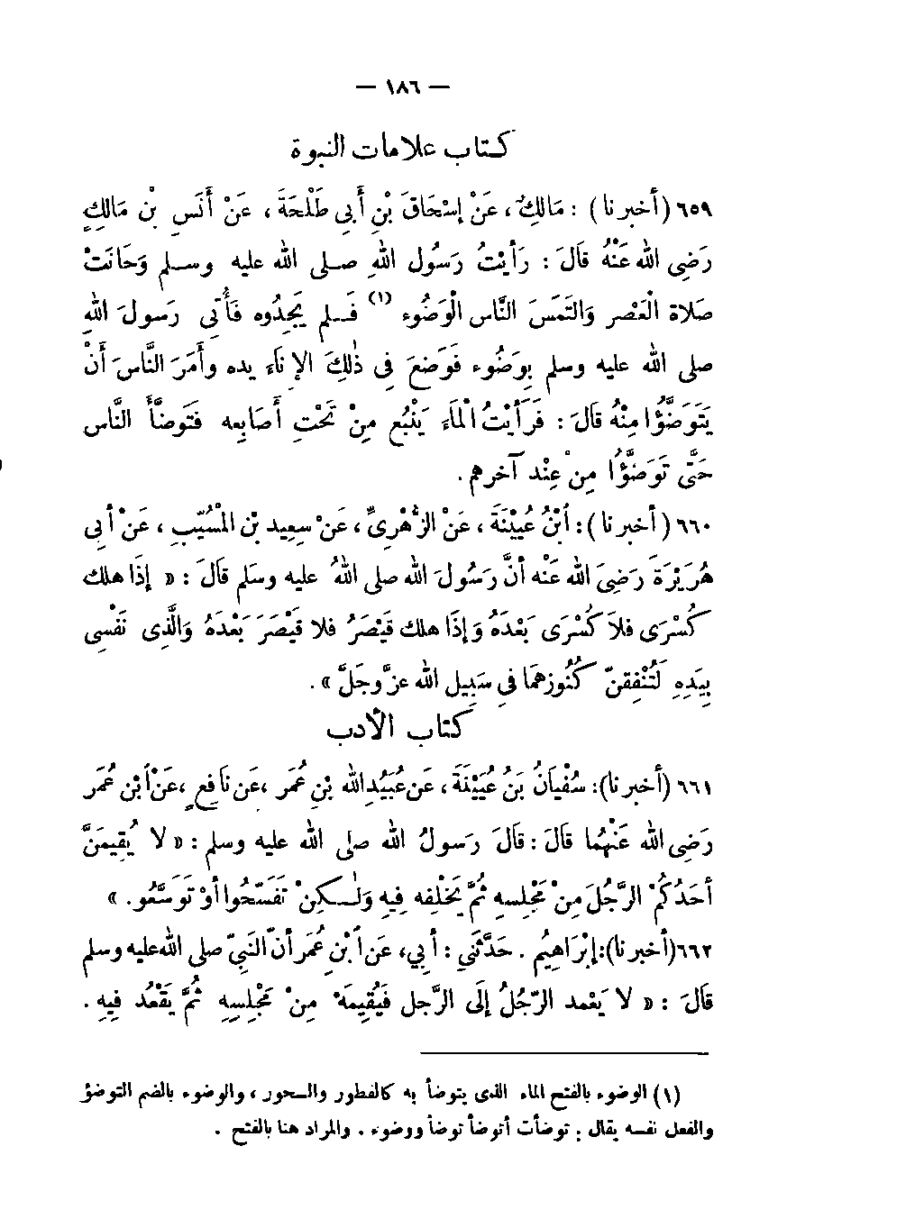 660- (أخبرنا) : ابنُ عُيَيْنَةَ، عَنِ الزُّهْريّ، عَنْ سَعِيدِ بنِ المُسَيّب، عَنْ أبِي هُرَيْرَةَ رَضِيَ اللَّه عَنْهُ: