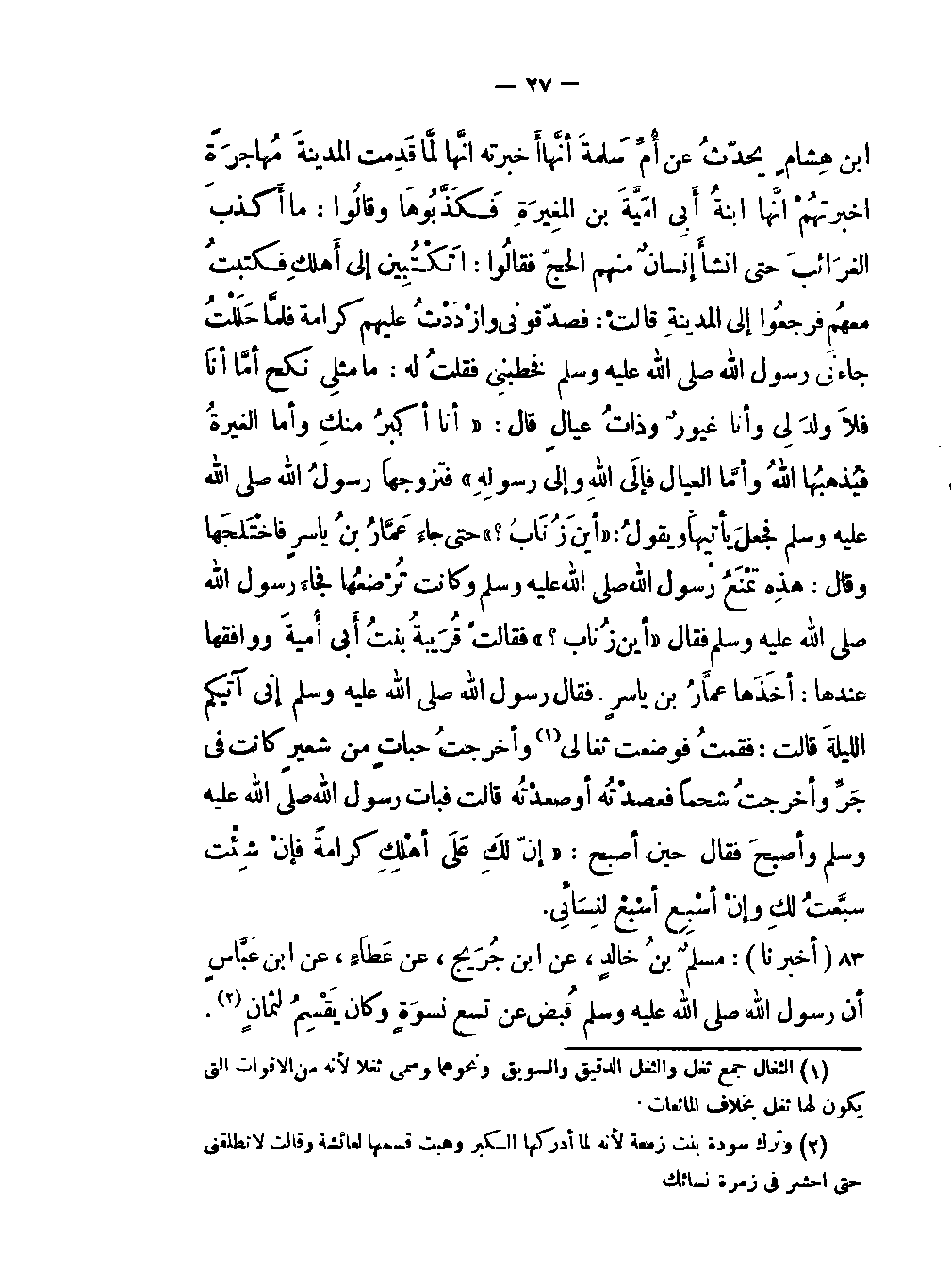 ابنِ هِشامٍ يُحدّثُ عن أُمِّ سَلمةَ: