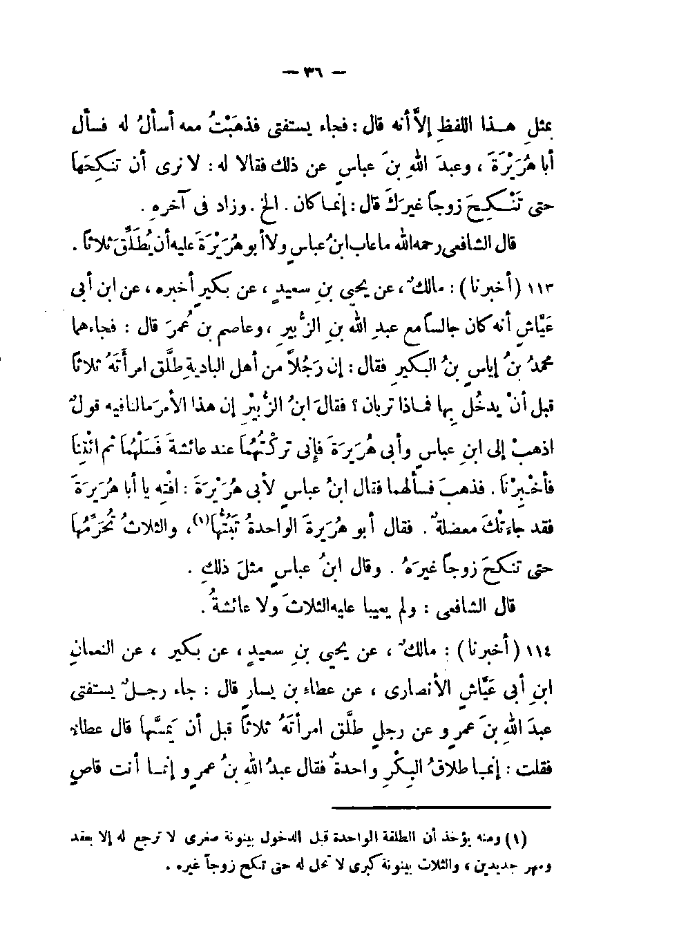 -فجاءهما محمدُ بنُ إياسٍ بنُ البكيرِ فقال: إن رجُلاً من أهل البادِيةِ طلّق رجل امرأتَهُ ثلاثاً قبل أن يدخل بها فماذا تريان؟ فقالَ بنُ الزُّبَيْرِ إن هذا الأمرَ مالنا فيه قولٌ اذهبْ إلى ابنِ عباسٍ وأبي هُرَيْرَةَ فإني تركْتُهُما عند عائشةَ فَسَلْهُماَ ثم ائْتِناَ فأخْبِرْناَ فذهب فسألهما فقال ابنُ عباسٍ لأبي هُرَيْرَةَ: أفْتِه يا أباهُرَيْرَةَ: فقد جاءَتْكَ معضلةٌ فقال أبو هُرَيْرَةَ الواحدةُ تَبُتُّهاَ (ومنه يؤخذ أن الطلقة الواحدة قبل الدخول بينونة صغرى لا ترجع له إلا بعقد ومهر جديدين والثلاث بينونة كبرى لا تحل له حتى تنكح زوجاً غيره) ، والثلاثُ تُحَرمِّمُهاَ حتى تنكحَ زوجاً غيرهُ وقال ابنُ عباسٍ مثلَ ذلك.