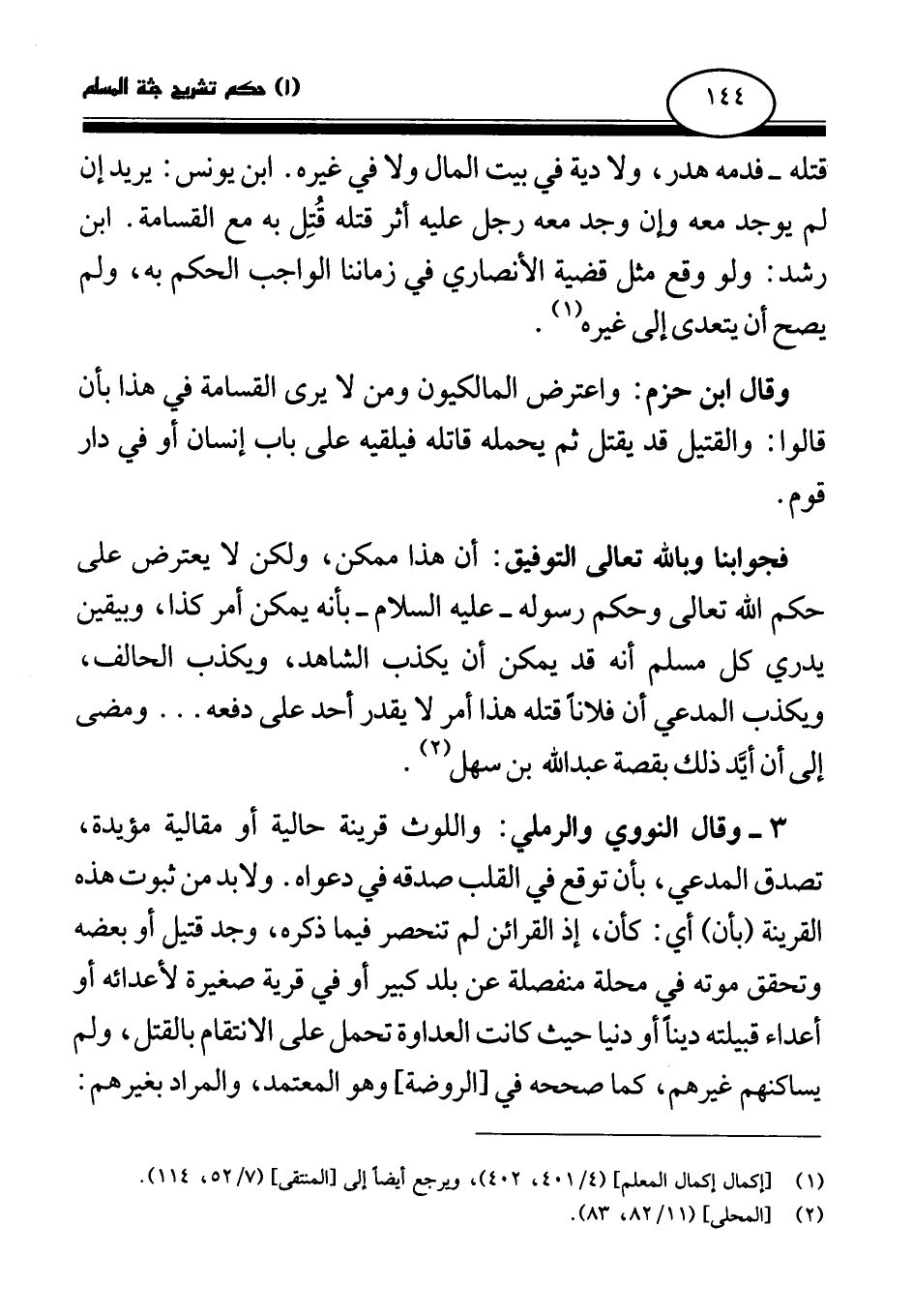 (¬1) [إكمال إكمال المعلم] (4\401، 402) ، ويرجع أيضا إلى [المنتقى] (7\ 52، 114) .