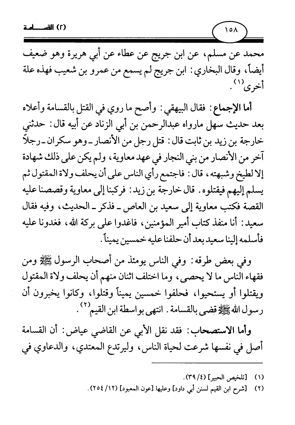 أما الإجماع: فقال البيهقي: وأصح ما روي في القتل بالقسامة وأعلاه بعد حديث سهل ما رواه عبد الرحمن بن أبي الزناد عن أبيه قال: حدثني خارجة بن زيد بن ثابت قال: قتل رجل من الأنصار - وهو سكران- رجلا آخر من الأنصار من بني النجار في عهد معاوية، ولم يكن على ذلك شهادة إلا لطيخ وشبهته، قال: فاجتمع رأي الناس على أن يحلف ولاة المقتول ثم يسلم إليهم فيقتلوه. قال خارجة بن زيد: فركبنا إلى معاوية وقصصنا عليه القصة فكتب معاوية إلى سعيد بن العاص - فذكر- الحديث، وفيه فقال سعيد: أنا منفذ كتاب أمير المؤمنين، فاغدوا على بركة الله، فغدونا عليه فأسلمه إلينا سعيد بعد أن حلفنا عليه خمسين يمينا.