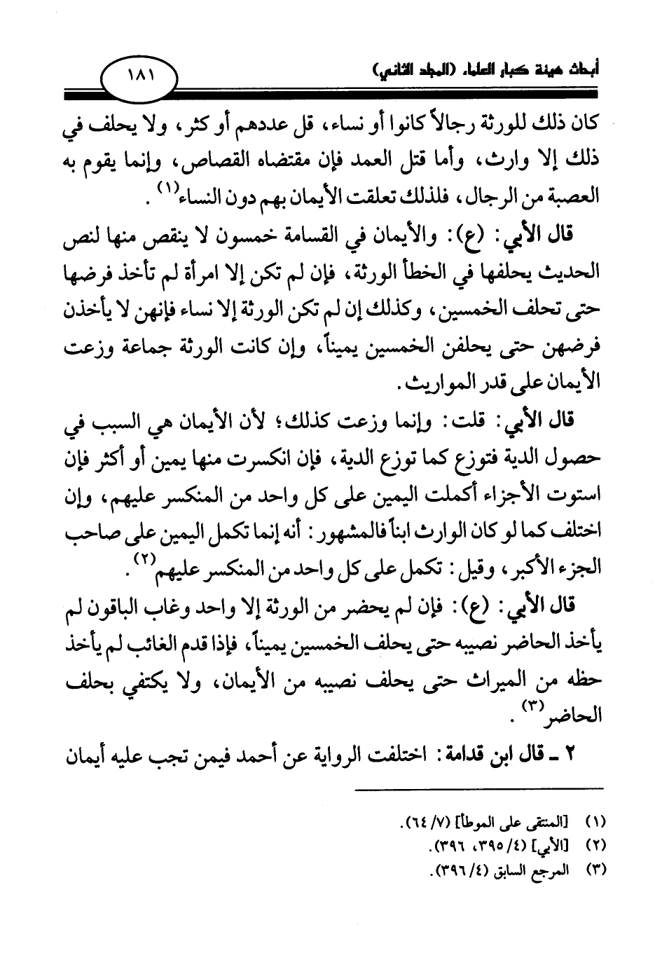 2 - قال ابن قدامة: اختلفت الرواية عن أحمد فيمن تجب عليه أيمان
