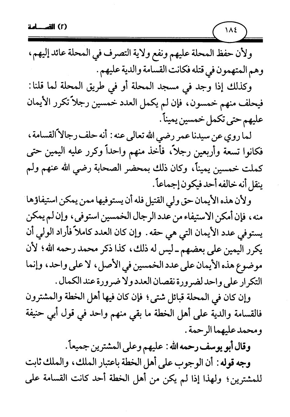 ولأن حفظ المحلة عليهم ونفع ولاية التصرف في المحلة عائد إليهم، وهم المتهمون في قتله فكانت القسامة والدية عليهم.