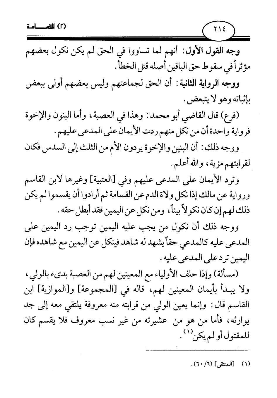 ووجه الرواية الثانية: أن الحق لجماعتهم وليس بعضهم أولى ببعض بإثباته وهو لا يتبعض.