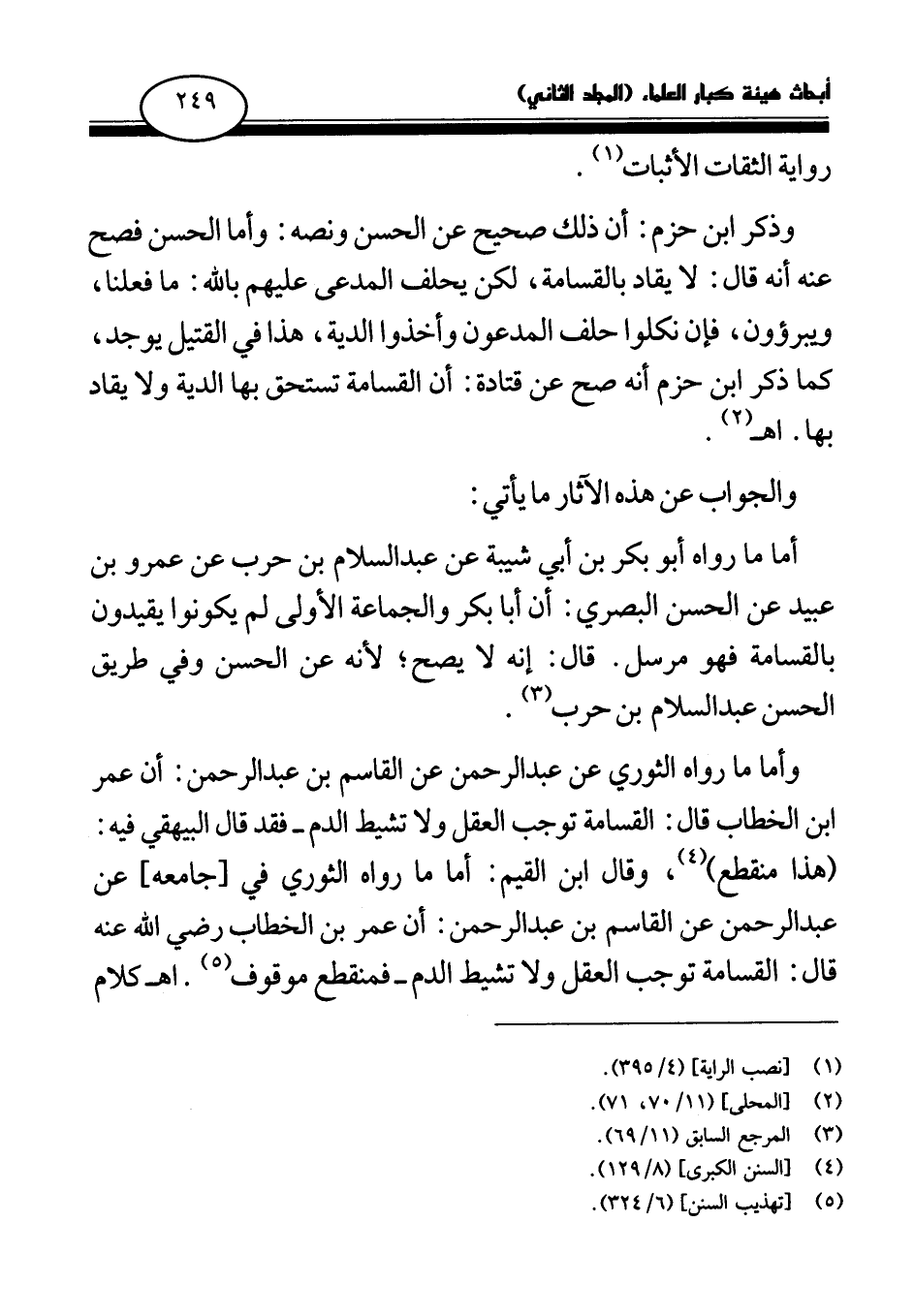 أما ما رواه أبو بكر بن أبي شيبة عن عبد السلام بن حرب عن عمرو بن عبيد عن الحسن البصري: أن أبا بكر والجماعة الأولى لم يكونوا يقيدون بالقسامة فهو مرسل. قال: إنه لا يصح، لأنه عن الحسن وفي طريق الحسن عبد السلام بن حرب (¬3) .