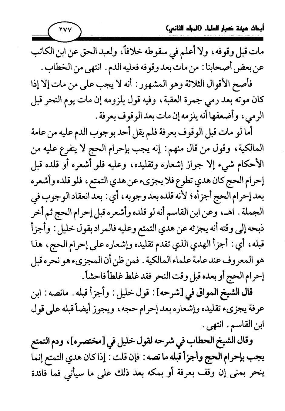 وقال الشيخ الحطاب في شرحه لقول خليل في [مختصره] ، ودم التمتع يجب بإحرام الحج وأجزأ قبله ما نصه: فإن قلت: إذا كان هدي التمتع إنما ينحر بمنى إن وقف بعرفة أو بمكة بعد ذلك على ما سيأتي فما فائدة