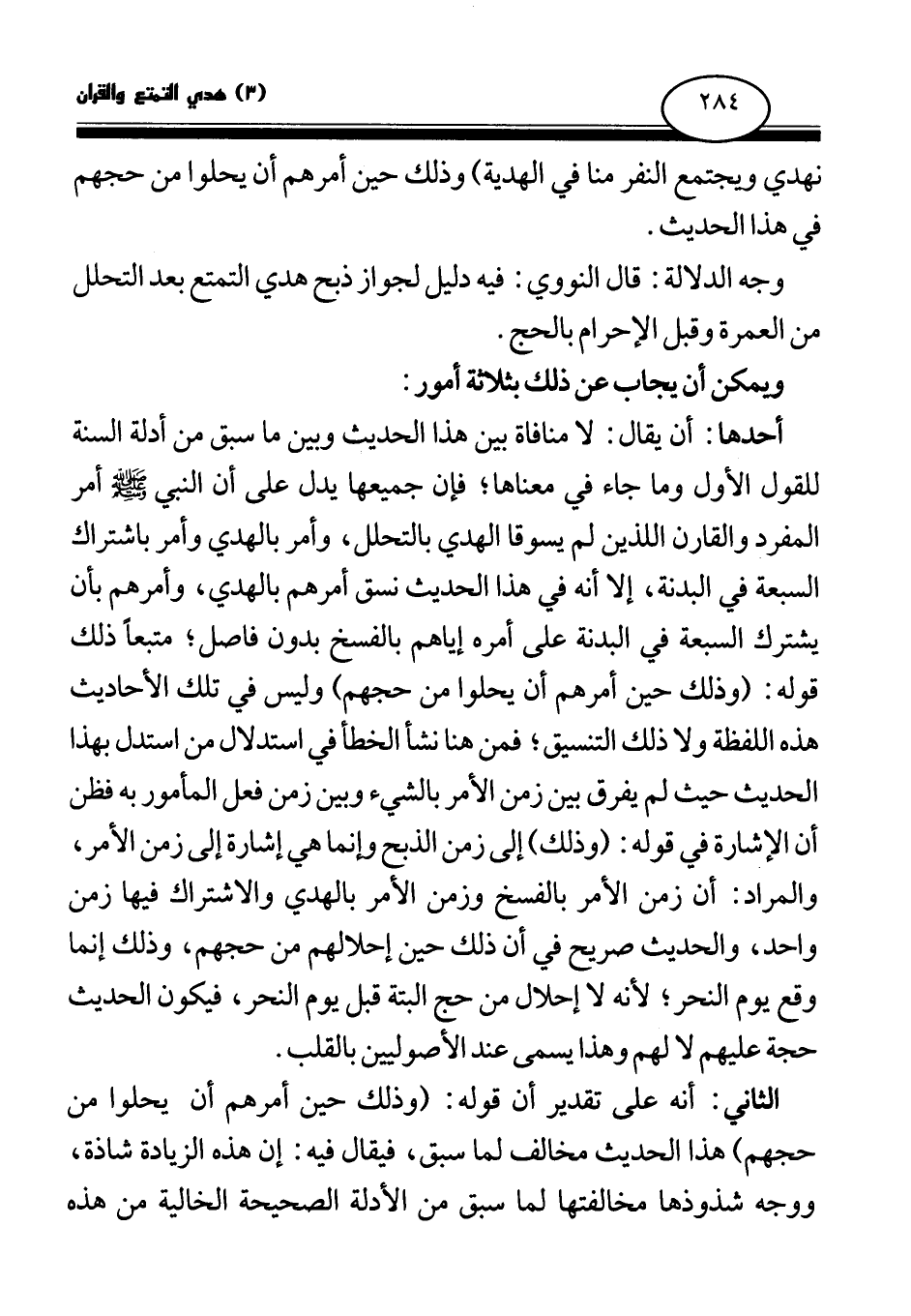 الثاني: أنه على تقدير أن قوله: (وذلك حين أمرهم أن يحلوا من حجهم) هذا الحديث مخالف لما سبق، فيقال فيه: إن هذه الزيادة شاذة، ووجه شذوذها مخالفتها لما سبق من الأدلة الصحيحة الخالية من هذه