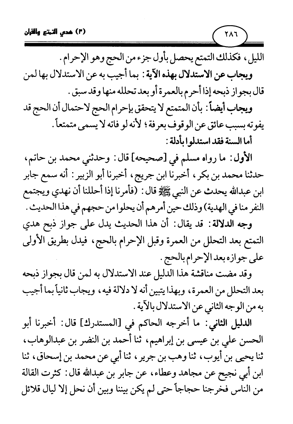 ويجاب عن الاستدلال بهذه الآية: بما أجيب به عن الاستدلال بها لمن قال بجواز ذبحه إذا أحرم بالعمرة أو بعد تحلله منها وقد سبق.
