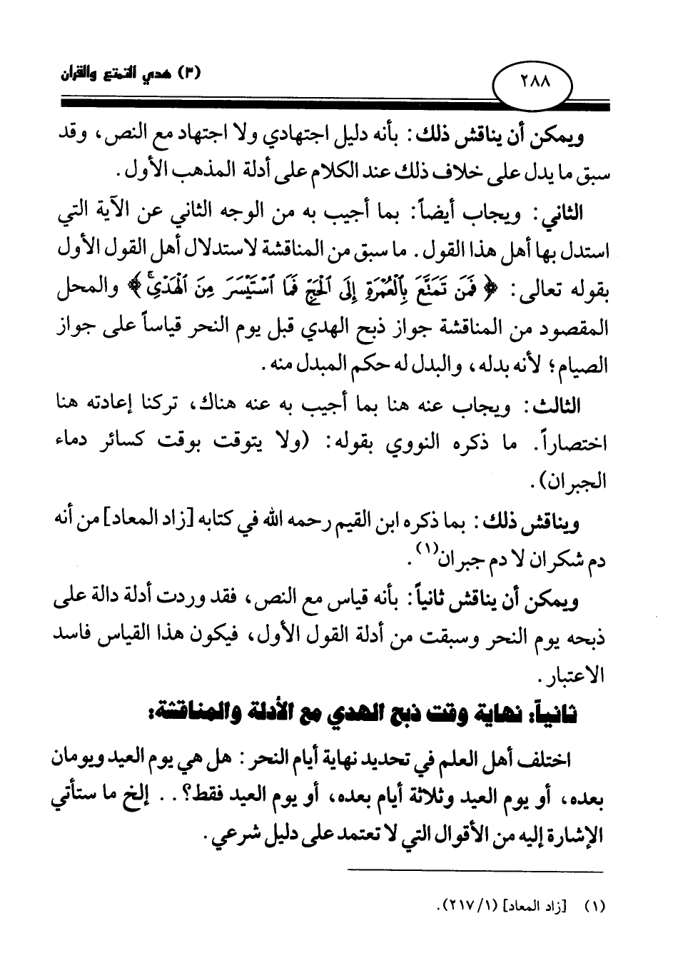 ويناقش ذلك: بما ذكره ابن القيم رحمه الله في كتابه [زاد المعاد] ، من أنه دم شكران لا دم جبران (¬2)