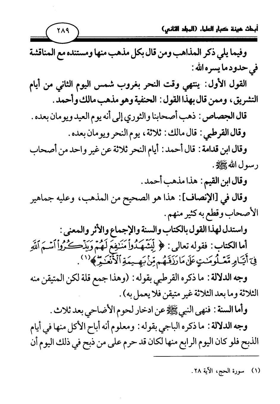 أما الكتاب: فقوله تعالى: {لِيَشْهَدُوا مَنَافِعَ لَهُمْ وَيَذْكُرُوا اسْمَ اللَّهِ فِي أَيَّامٍ مَعْلُومَاتٍ عَلَى مَا رَزَقَهُمْ مِنْ بَهِيمَةِ الْأَنْعَامِ} (¬1)