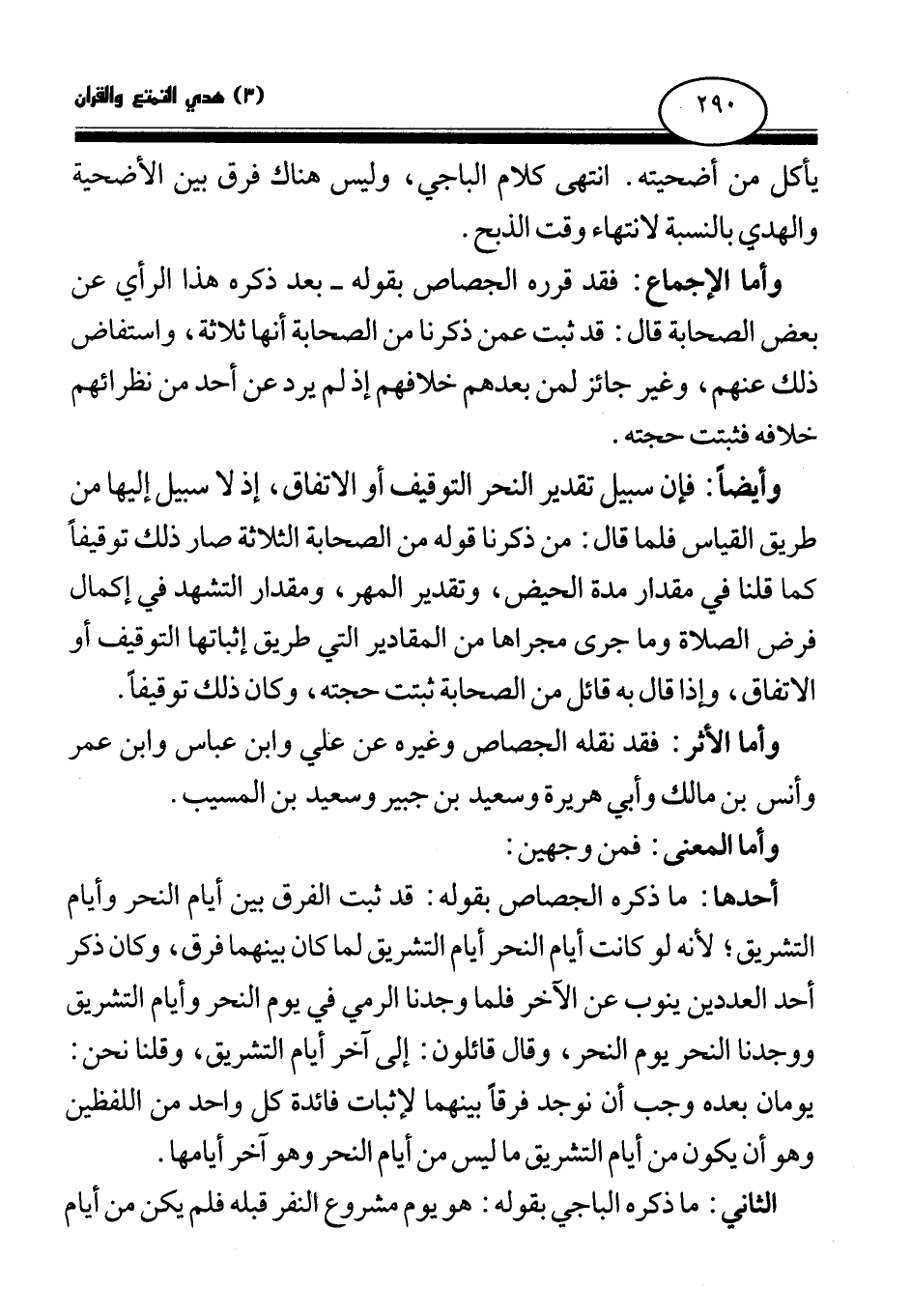 وأيضا: فإن سبيل تقدير النحر التوقيف أو الاتفاق، إذ لا سبيل إليها من طريق القياس فلما قال: من ذكرنا قوله من الصحابة الثلاثة صار ذلك توقيفا كما قلنا في مقدار مدة الحيض، وتقدير المهر، ومقدار التشهد في إكمال فرض الصلاة وما جرى مجراها من المقادير التي طريق إثباتها التوقيف أو الاتفاق، وإذا قال به قائل من الصحابة ثبتت حجته، وكان ذلك توقيفا.