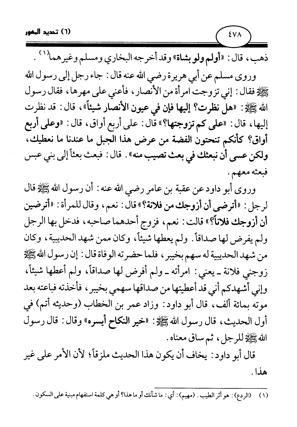 ذهب، قال: " أولم ولو بشاة (¬1) » وقد أخرجه البخاري ومسلم وغيرهما (¬2) .