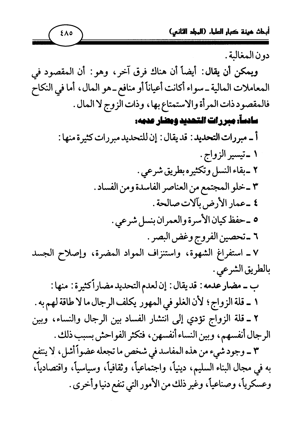 سادسا: مبررات التحديد ومضار عدمه: