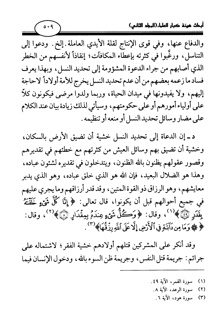 والدفاع عنها، وفي قوى الإنتاج لقلة الأيدي العاملة. إلخ، ودعوا إلى التناسل، ورغبوا في كثرته بإعطاء المكافآت؛ إنقاذا لأنفسهم من الخطر الذي أصابهم من جراء الدعوة المشئومة إلى تحديد النسل، وبهذا يعرف فساد ما زعمه بعضهم من أن عدم تحديد النسل يخرج للأمة أولادا لا حاجة إليهم، ولا يفيدونها في ميدان الحياة، وربما ولدوا مرضى فيكونون كلا على أولياء أمورهم أو على حكومتهم، وسيأتي لذلك زيادة بيان عند الكلام على مضار وسائل تحديد النسل أو منعه أو تنظيمه.