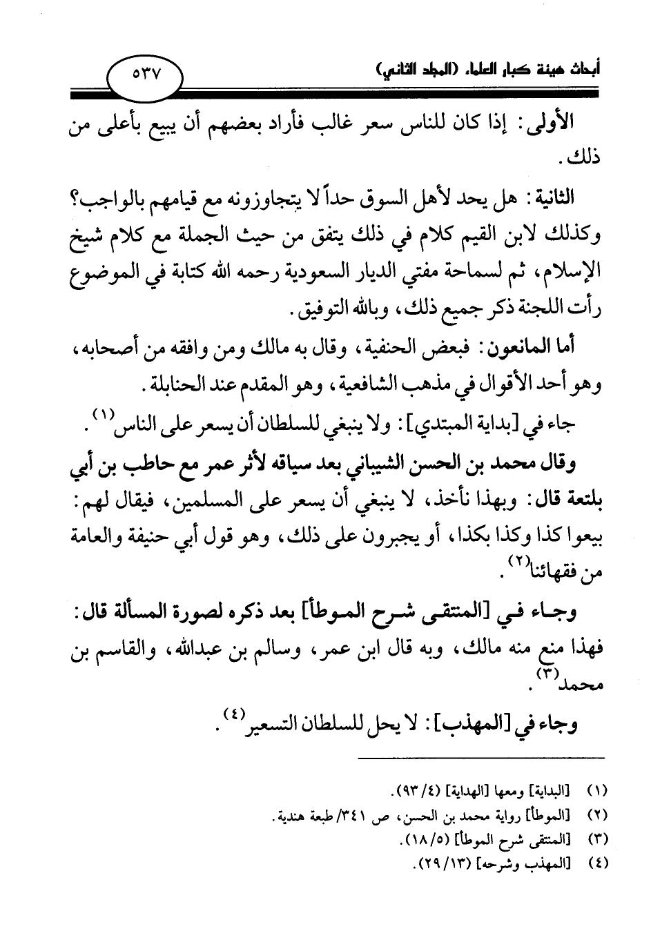 الثانية: هل يحد لأهل السوق حدا لا يتجاوزونه مع قيامهم بالواجب؟ وكذلك لابن القيم كلام في ذلك يتفق من حيث الجملة مع كلام شيخ الإسلام، ثم لسماحة مفتي الديار السعودية رحمه الله كتابة في الموضوع رأت اللجنة ذكر جميع ذلك، وبالله التوفيق.