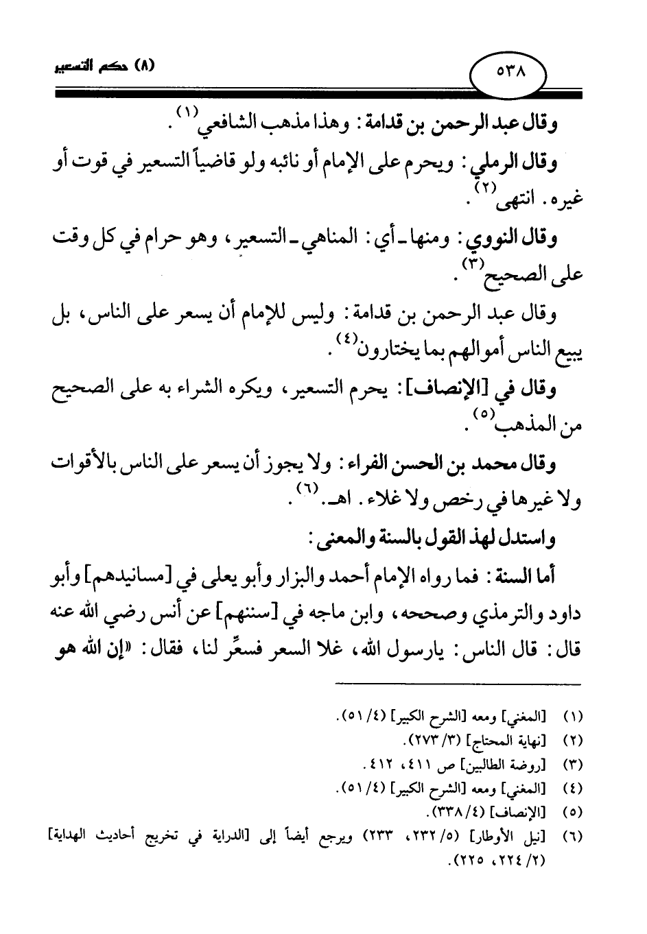 وقال عبد الرحمن بن قدامة: وليس للإمام أن يسعر على الناس، بل يبيع الناس أموالهم بما يختارون (¬4) .