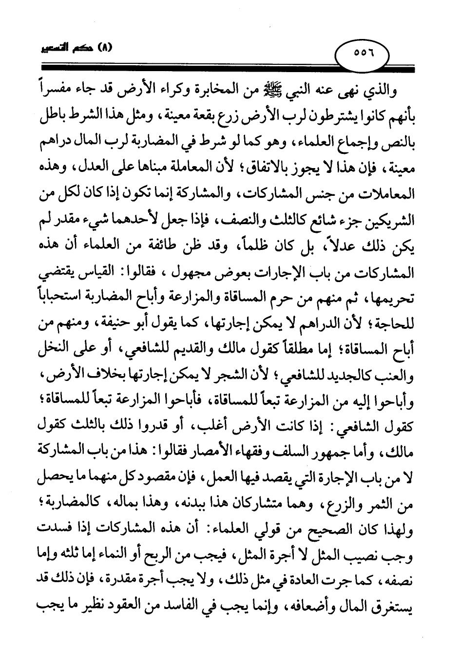 والذي نهى عنه النبي صلى الله عليه وسلم من المخابرة وكراء الأرض قد جاء مفسرا بأنهم كانوا يشترطون لرب الأرض زرع بقعة معينة، ومثل هذا الشرط باطل بالنص وإجماع العلماء، وهو كما لو شرط في المضاربة لرب المال دراهم معينة، فإن هذا لا يجوز بالاتفاق؛ لأن المعاملة مبناها على العدل، وهذه المعاملات من جنس المشاركات، والمشاركة إنما تكون إذا كان لكل من الشريكين جزء شائع كالثلث والنصف، فإذا جعل لأحدهما شيء مقدر لم يكن ذلك عدلا، بل كان ظلما، وقد ظن طائفة من العلماء أن هذه المشاركات من باب الإجارات بعوض مجهول، فقالوا: القياس يقتضي تحريمها، ثم منهم من حرم المساقاة والمزارعة وأباح المضاربة استحبابا للحاجة؛ لأن الدراهم لا يمكن إجارتها، كما يقول أبو حنيفة، ومنهم من أباح المساقاة، إما مطلقا كقول مالك والقديم للشافعي، أو على النخل والعنب كالجديد للشافعي، لأن الشجر لا يمكن إجارتها بخلاف الأرض، وأباحوا إليه من المزارعة تبعا للمساقاة، فأباحوا المزارعة تبعا للمساقاة، كقول الشافعي: إذا كانت الأرض أغلب، أو قدروا ذلك بالثلث كقول مالك، وأما جمهور السلف وفقهاء الأمصار فقالوا: هذا من باب المشاركة لا من باب الإجارة التي يقصد فيها العمل، فإن مقصود كل منهما ما يحصل من الثمر والزرع، وهما متشاركان هذا ببدنه، وهذا بماله، كالمضاربة؛ ولهذا كان الصحيح من قولي العلماء: أن هذه المشاركات إذا فسدت وجب نصيب المثل لا أجرة المثل، فيجب من الربح أو النماء إما ثلثه وإما نصفه، كما جرت العادة في مثل ذلك، ولا يجب أجرة مقدرة، فإن ذلك قد يستغرق المال وأضعافه، وإنما يجب في الفاسد من العقود نظير ما يجب